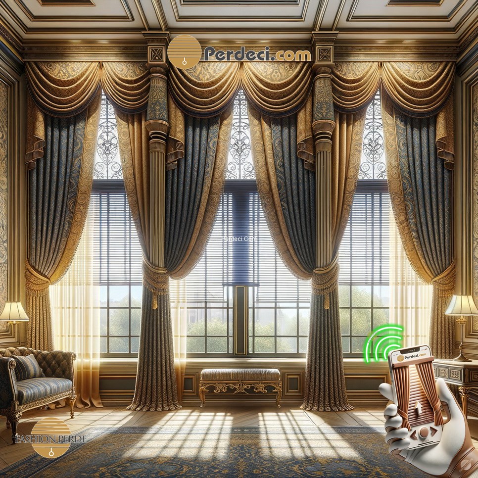 Pencere perdesi yüksek tavana göre özel tasarım: Pencere perdesinin yüksek tavana uygun olarak özel olarak tasarlanmış modelleri.